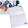 Der Umschlag wird aus 350 g/m² Bilderdruckpapier mit matter Oberfläche gefertigt. Die Innenseiten bestehen aus 80 g/m² Offsetpapier, das sich besonders gut beschreiben und bestempeln lässt.